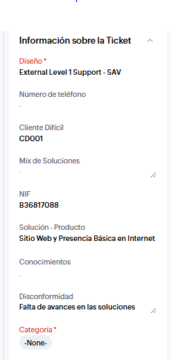 La tipificación del ticket debe ser la siguiente: