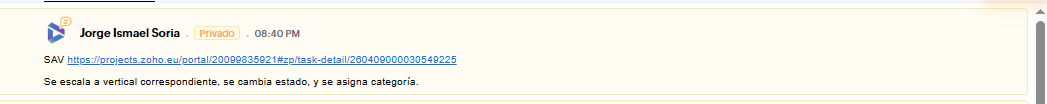 Dentro del ticket también debemos dejar comentario privado con el enlace a la SAV como en el siguiente ejemplo: