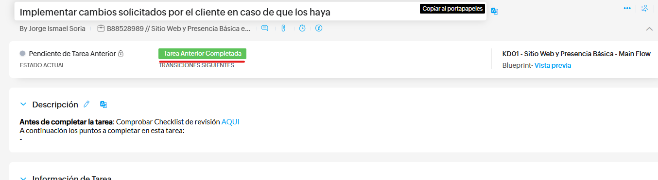 Si un cliente ingresa solicitando las credenciales de acceso debemos primero verificar dentro de zoho project si encontramos la información podremos encontrarlo dentro de las siguientes secciones: - Dentro de comentarios del proyecto - Dentro de la ...